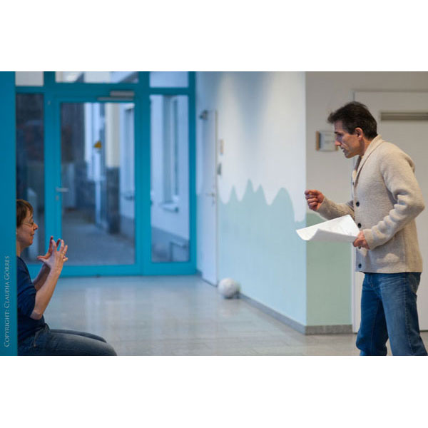 Die jetzige Arbeit setzt an der Kreativität der einzelnen Spieler an, die aus den Geschichten heraus Ideen für eine Bühneninszenierung entwickeln. Dabei werden teilweise die gesammelten Geschichten in Szenen so nachgespielt, wie sie in etwa stattgefunden haben, oder es werden Gefühle und Stimmungen herausgestellt, die in chorischer Form durch die Gruppe zum Ausdruck gebracht werden. Darüber hinaus diskutieren wir aber auch ständig über bestimmte Erfahrungen der TeilnehmerInnen. Die ganze Arbeit ist ein offener, kreativer Prozess, der von allen TeilnehmerInnen viel Einsatz erfordert. Gleichzeitig entstehen immer wieder neue Ideen und Spielimpulse aus der Gruppe heraus, die wir ebenfalls für die Inszenierung nutzen möchten. Für mich als Leiterin ist es interessant zu sehen, wie sich meine eigenen Vorstellungen über unser Verhältnis zu Menschen mit Migrationshintergrund durch diese gemeinsame Theaterarbeit verändern. Wir haben in der Gruppe immer wieder „Aha-Erlebnisse“ und lernen sehr viel voneinander. Es ist ein spannendes Projekt und wir wissen nicht, welchen Ausgang es nimmt. Wir haben kein fertiges Drehbuch, wir schreiben es selber. Es sind schon wunderbare Szenen entstanden, auch wenn alle beruflich, familiär oder schulisch eingebunden sind und immer wieder Termine dazwischen kommen. Ich hoffe, dass wir im Frühjahr nächsten Jahres mit unseren Ergebnissen auftreten können.