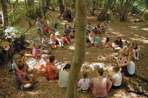 Eine Waldwoche zu den Ursprüngen unserer Märchen- und Mythenwelt In den tiefen, dunklen Wäldern, auf Sonnen beschienen Wiesen oder am Wegesrand vor hohen Hecken, fallen uns immer wieder Episoden aus verschiedenen Märchen ein. In dieser natürlichen Kulisse werden wir uns gegenseitig Märchen vortragen und im Stehgreifspiel vorspielen. Die große Naturwiese mit den Apfelbäumen bietet eine wunderbare Kulisse für eine „Frau Holle“ oder für das „Das tapfere Schneiderlein“- und was an Bühnenbild noch fehlt, das können wir selber hinzubauen! Darüber hinaus filzen wir aus Wolle Figuren aus der Welt der Märchen, mit denen wir ein Puppenspiel einüben. Ein alter Baum kann uns vielleicht als Theaterbühne dienen.